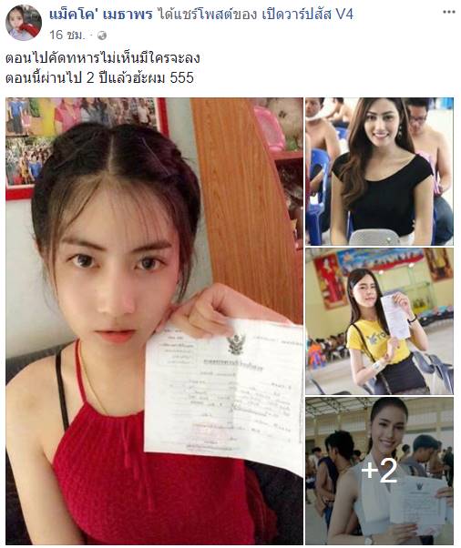 แห่แชร์ภาพน้องแม็คโค สาวประเภทสองถ่ายภาพคู่กับเอกสารการเกณฑ์ทหาร เห็นรอบแรกแทบไม่เชื่อสายตา น่ารัก น่าทะนุถนอมขนาดนี้ สาวแท้ยังอาย