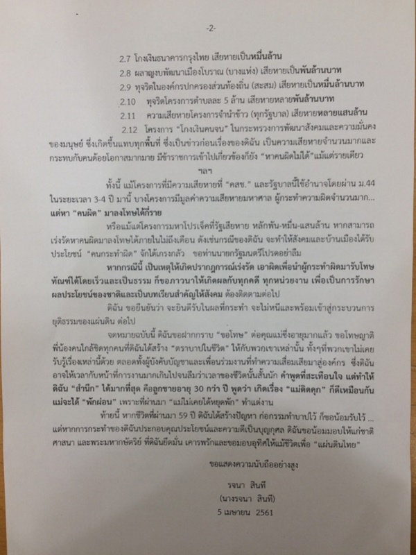 รจนา สินที ร่อนจดหมายถึงสื่อ ยอมรับผิดปมทุจริตโกงเงินกองทุนเสมาพัฒนาชีวิต แฉอีกหลายโครงการโกงเพียบแต่ลอยนวล หวังรัฐตามจับให้เท่าเทียม