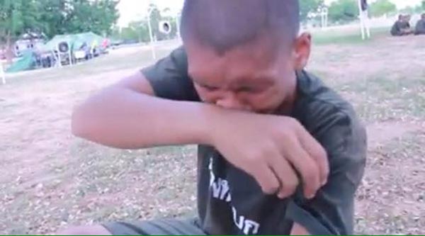 ดังเช่นคลิปนี้ที่เผยให้เห็นภาพของพลทหารนายหนึ่ง ซึ่งมีอาการเศร้าก่อนจะกลั้นน้ำตาไว้ไม่อยู่ โดยทางครูฝึกได้พยายามปลอบใจ และสอบถามว่าคิดถึงบ้านและพ่อแม่บ้างไหม โดยตอนแรกพลทหารนายดังกล่าว ฝืนใจตอบว่า "ไม่ครับ"