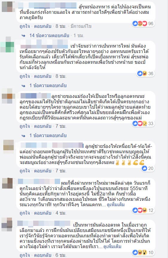 ทั้งนี้หลังคลิปดังกล่าวถูกเผยแพร่ออกไป ได้มีผู้เข้ามาแสดงความคิดเห็นจำนวนมาก โดยมีบางส่วนที่เคยเป็นพลทหารต่างยอมรับว่าเข้าใจความรู้สึกเป็นอย่างดี ขณะที่ส่วนใหญ่นั้นต่างเห็นใจและให้กำลังใจพลทหารนายนี้เป็นจำนวนมาก