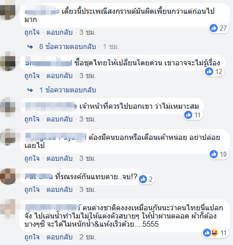 กลายเป็นที่ถกเถียงกันอย่างมากสำหรับกรณีนี้ โดยหลายคนมองว่าเพราะเป็นต่างชาติอาจจะไม่ทราบเรื่องการรณรงค์การแต่งกายก็เป็นได้ หรือจะมองว่าเป็นชุดเล่นน้ำปกติของชาวต่างชาติ เพียงแค่ไม่เหมาะกับเทศกาลสงกรานต์เท่านั้นเอง