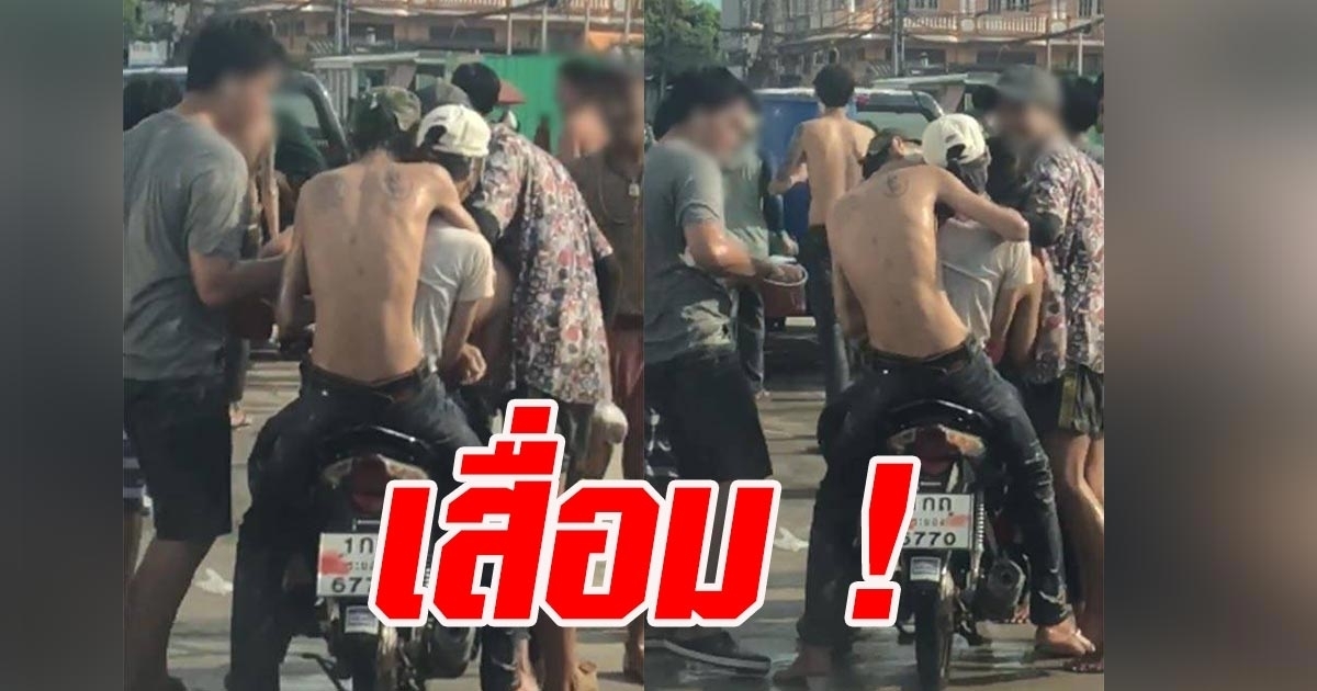 เสื่อม ! คลิปโจ๋รุมเล่นสงกรานต์กับสาวขี่มอเตอร์ไซค์ มือไม้จับอีกฝ่ายเต็มที่ หนีไปไหนไม่พ้น โซเชียลรุมด่า แชร์นับหมื่นครั้ง