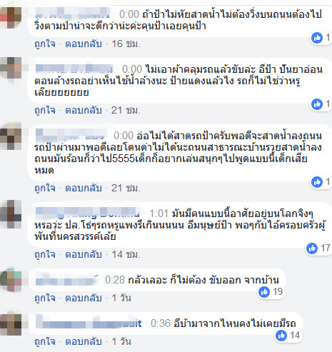 กลายเป็นว่าคุณป้าท่านนี้ไม่ได้ด่าเด็กแต่ประการใด เพียงแค่อยากให้พ่อแม่สั่งสอนลูกบ้าง เพราะสาดน้ำใส่รถ พอเปิดกระจกก็สาดน้ำใส่เข้าไปในรถอีก ทำให้เกิดอารมณ์โมโหอย่างที่เห็นกัน