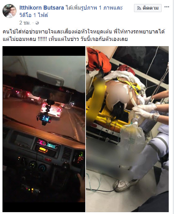 ในคลิปดังกล่าวพบว่า รถพยาบาลซึ่งบรรทุกคนไข้นั้น ได้ทำการเปิดหวอและไซเรนอย่างชัดเจน แต่รถเก๋งคันสีขาวด้านหน้ากลับไม่สนใจและไม่หลบเข้าเลนซ้ายทั้งที่มีที่ว่าง ส่งผลให้รถพยาบาลต้องล่าช้าในการช่วยเหลือผู้ป่วยโดยไม่จำเป็น และเสี่ยงที่จะทำให้คนไข้เสียชีวิตได้จากพฤติกรรมไร้น้ำใจบนท้องถนนดังกล่าว
