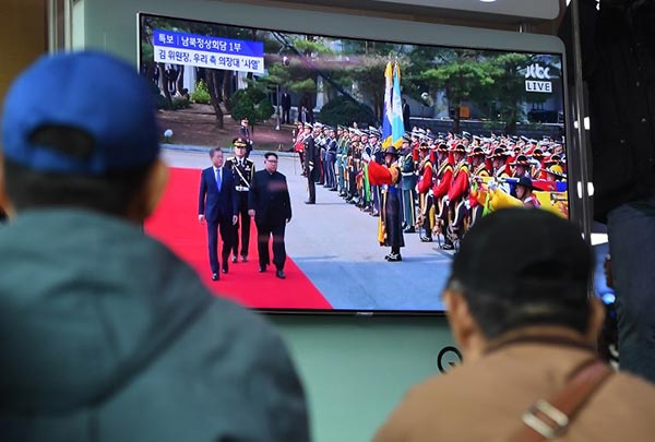 จากนั้น นายมุนแจอึน ได้เดินเข้ามาในเขตแดนของเกาหลีเหนือ และนายคิมจองอึน ได้เดินเข้ามาในเขตแดนของเกาหลีใต้ และเดินไปตามพรมแดง พร้อมกับที่นายคิมจองอึน ได้ตรวจแถวกองทหารเกียรติยศ และเดินเข้าสู่สำนักงานสันติภาพ