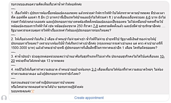 เกี่ยวกับเรื่องนี้ (27 เมษายน 2561) สำนักข่าวช่องวัน รายงานว่า ผู้ประกอบการรายหนึ่งได้ส่งข้อความชี้แจงข้อเท็จจริงอีกด้านของเจ้าของธุรกิจ เกี่ยวกับการเก็บค่าน้ำ ค่าไฟของหอพักว่า ทุกอย่างมีต้นทุน ทุกวันนี้ผู้ประกอบการต้องซื้อหม้อแปลงเอง ส่วนค่าไฟ ค่าน้ำ ก็ไม่ได้ให้เรตราคาตามบ้าน ซึ่งส่วนนี้รัฐบาลควรมีมาตรการควบคุมเรื่องเรตค่าไฟ ค่าน้ำ ของผู้ประกอบการก่อนหรือเปล่า