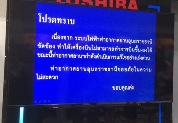 สนามบินอุบลราชธานีโกลาหล ระบบไฟฟ้าขัดข้อง คาดเกิดไฟไหม้ห้องแผงควบคุมวงจรไฟฟ้า ล่าสุดยกเลิกทุกเที่ยวบิน