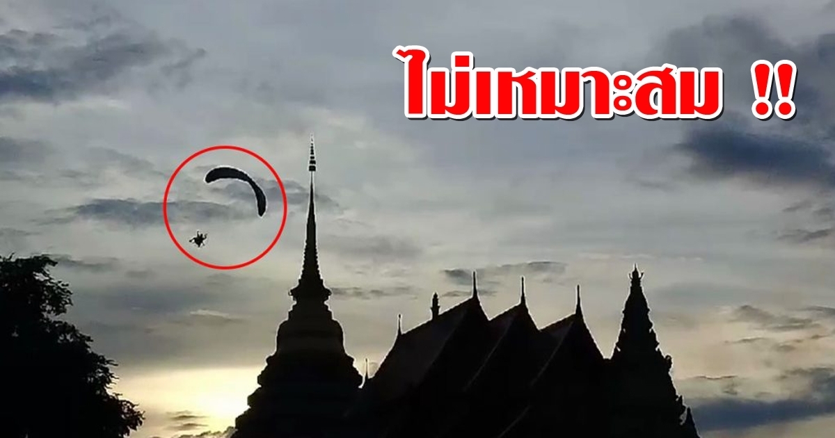 ชาวบ้านลำปางหลวง จวกชายต่างชาติบินพารามอเตอร์ เหนือพระธาตุลำปางหลวง ชี้ไม่เหมาะสม เพราะภายในได้บรรจุพระบรมสารีริกธาตุไว้