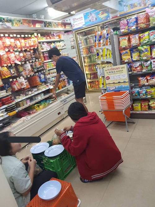 โซเชียลวิจารณ์สนั่น ปมแชร์ภาพพนักงานเซเว่น ตั้งโต๊ะล้อมวงกินข้าวชิล ๆ กลางร้าน ยืนบนตะกร้าที่ใช้ใส่อาหาร แถมยังชอบตะโกนคุยกันหยาบคายข้ามหัวลูกค้า
