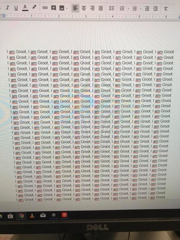 ถูกต้อง ตัวละครที่เด็กคนนี้เลือกมาก็คือ กรูท แห่ง Guardians of the Galaxy ซึ่งมีคำพูดในการสื่อสารเพียงวลีเดียวเท่านั้นคือ "I am Groot"