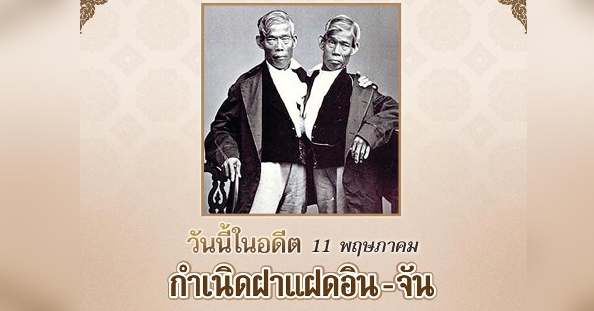 วันนี้ในอดีต 11 พฤษภาคม รำลึก แฝดสยาม "อิน-จัน" ฝาแฝดชาวไทย ที่มีชื่อเสียงดังไกลในต่างแดน และเป็นฝาแฝดตัวติดกันคู่แรกของโลก ที่สามารถดำรงชีพเหมือนคนธรรมดาได้ตลอดชีวิต แถมมีทายาทถึง 1,500 คน