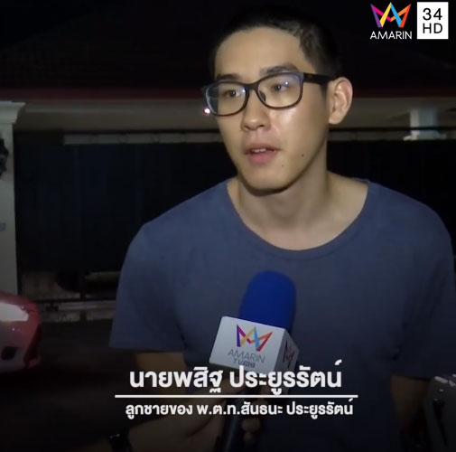 เฟซบุ๊ก ทุบโต๊ะข่าว Amarin TV 34 รายงานว่า นายพสิฐ ประยูรรัตน์ บุตรชายของ พ.ต.ท. สันธนะ