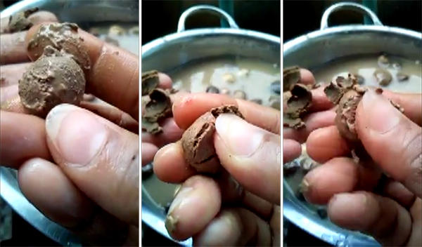 และเมื่อนำกลับบ้านไปล้าง ก็พบว่ามีดินเหนียวหุ้มไว้