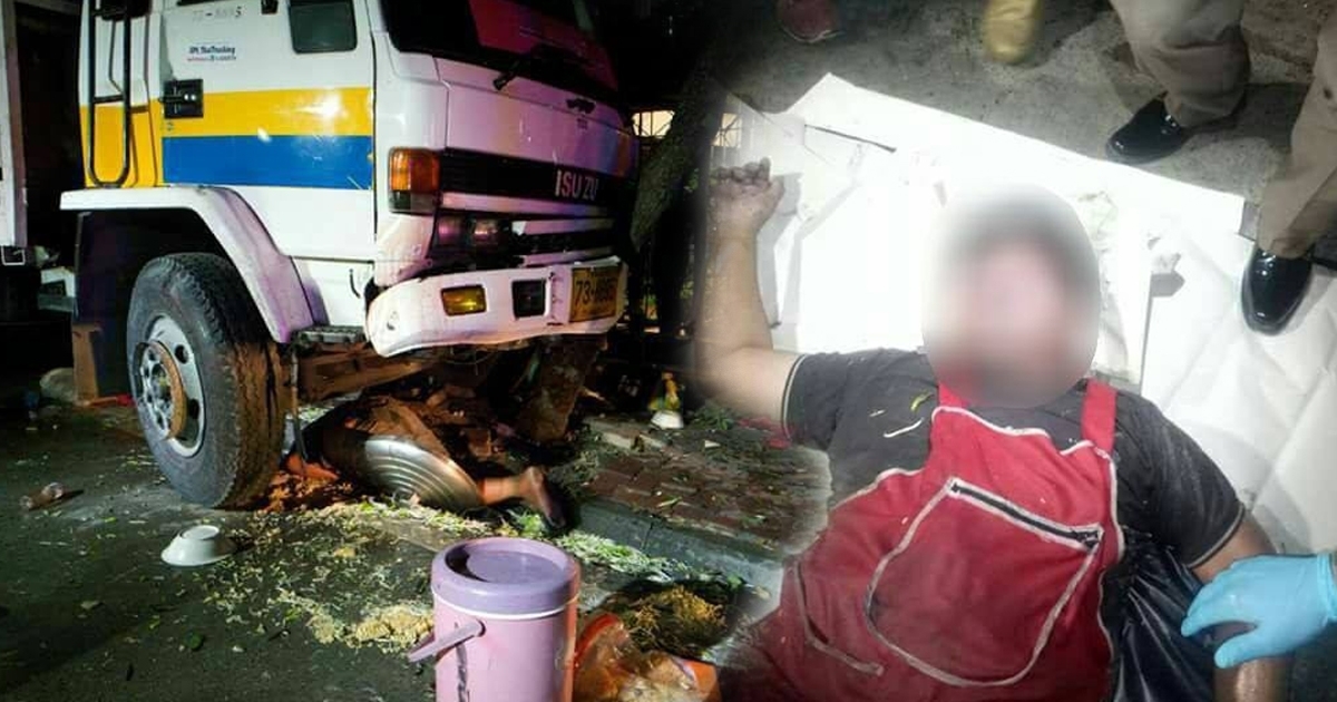 จากการสอบถามลูกจ้างร้านก๋วยเตี๋ยวดังกล่าว เล่าว่า ช่วงเวลาหลังเที่ยงคืน ขณะที่ผู้เสียชีวิตซึ่งเป็นเจ้าของร้าน กำลังยืนลวกเส้นให้ลูกค้าที่นั่งรออยู่ประมาณ 3-4 คน จู่ ๆ รถบรรทุกก็วิ่งพุ่งตรงเข้ามาชนรถเข็น ก่อนจะทับเจ้าของร้านและลูกค้า แล้วพุ่งไปชนต้นไม้ข้างทาง ส่วนตนยืนช่วยอยู่ข้าง ๆ รถเข็น ไม่เป็นอะไร โดนน้ำร้อนลวกเพียงเล็กน้อย