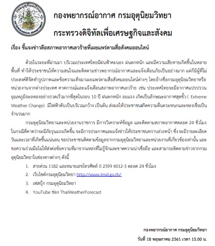 ได้ออกแถลงการณ์ชี้แจงข่าวลือสภาพอากาศที่เลวร้ายที่เผยแพร่ตามสื่อสังคมออนไลน์ว่า