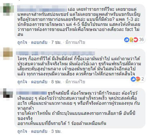 ล้านบาทเพื่อออกรายการนั้น มีจุดมุ่งหมายเพื่อหวังผลทางธุรกิจ