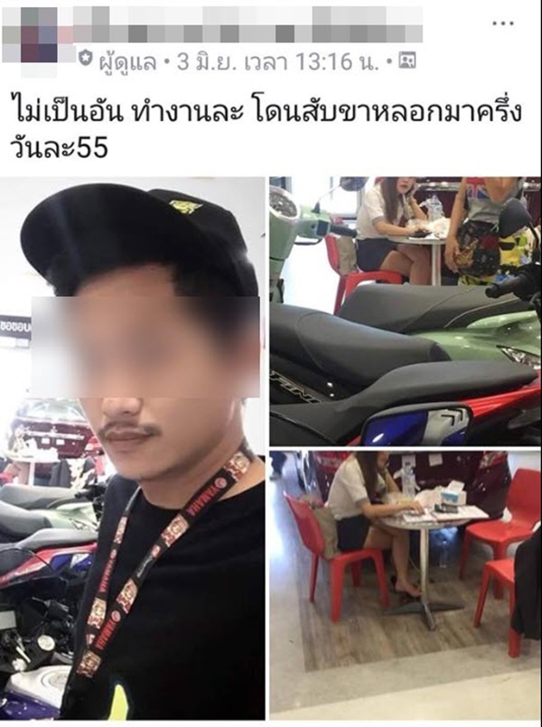 นอกจากนี้ยังมักมีพฤติกรรมชอบแอบถ่ายสาว ๆ นุ่งสั้นมาโพสต์ลงเฟซบุ๊ก