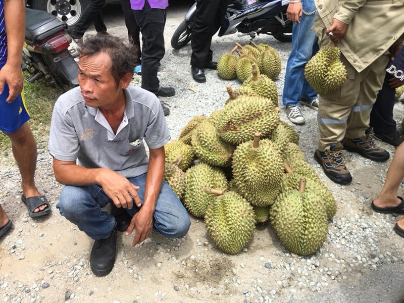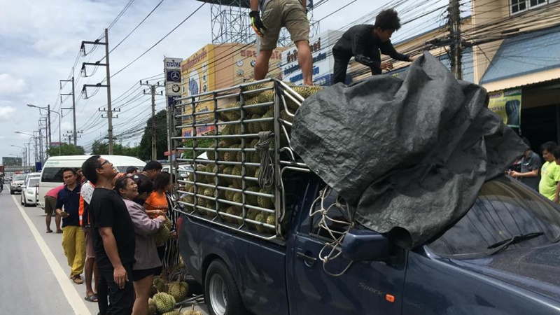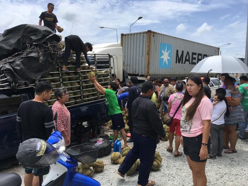 จนทำให้การจราจรติดขัด หลังรถกระบะบรรทุกทุเรียนมาจากจังหวัดหนึ่งในภาคใต้