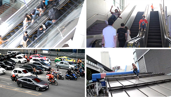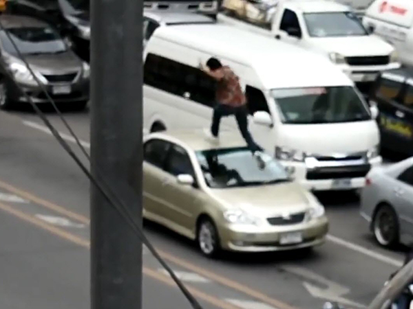 หนักสุดคือการวิ่งบนรถยนต์ที่จอดติดสัญญาณไฟจราจรจำนวนหลายคันนั้น