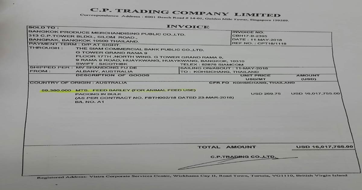 2.เอกสารหลักฐานการนำเข้าทั้ง 2 ครั้งระบุว่าใช้สำหรับอาหารสัตว์( FEED BARLEY) อย่างชัดเจน ทั้งเอกสารของกรมปศุสัตว์ และศุลกากร