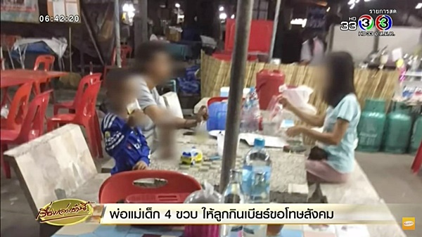 วันที่ 21 มิถุนายน 2561 รายการเรื่องเล่าเช้านี้ ช่อง 3 รายงานว่า โลกออนไลน์มีการแชร์ภาพเด็กชายวัย 4 ขวบกินเบียร์ โดยที่พ่อเป็นคนให้ในร้านอาหารแห่งหนึ่ง อ.ด่านช้าง จ.สุพรรณบุรี เหตุเกิดเมื่อวันที่ 17 มิถุนายน ที่ผ่านมา