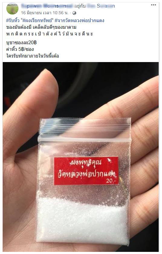 จากกรณีที่มีการเผยแพร่ภาพของ ผงพุทธคุณ หรือผงดูดทรัพย์ ซึ่งถูกวางขายอยู่ที่วัดชื่อดัง มีสรรพคุณช่วยเรียกเงินทอง โดยภายนอกมีลักษณะเป็นเกล็ดใส ๆ สีขาวนั้น (อ่านข่าว : วัดหลวงพ่อปากแดง โต้ให้คนไทยบูชาผงชูรส ยันคือผงพุทธคุณ !! )