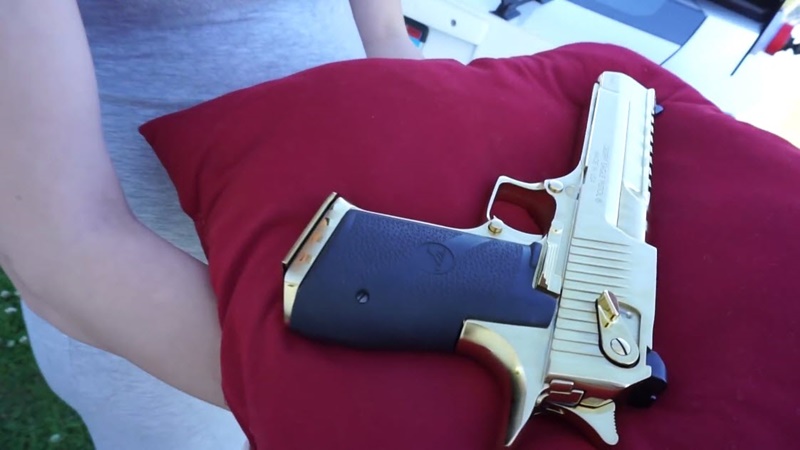 หลังจากนั้นโมนาลิซาก็ถือปืนพกสั้น Desert Eagle .50 Caliber สีทอง ออกมาโชว์ให้กล้องเห็น ซึ่งปืนชื่อดังนี้คือหนึ่งในปืนพกสั้นกึ่งอัตโนมัติที่มีอานุภาพรุนแรงที่สุดในโลก แผนการของเปโดรก็คือเขาจะยืนถือหนังสือสารานุกรมปกหนาเล่มหนึ่งเอาไว้แนบอก โมนาลิซาจะเป็นคนยิงปืนใส่หนังสือเล่มนั้น โดยพวกเขาตั้งกล้อง 2 ตัวเอาไว้คอยบันทึกภาพ เปโดรกล่าวอีกว่า ถ้าเขาจะต้องตายในวันนี้ เขาก็พร้อม เนื่องจากมั่นใจว่าพระเจ้าจะรอเขาอยู่บนสวรรค์ พระองค์อาจจะไม่ยินยอมรับตัวเขาไป เพราะว่าเขาตายด้วยสาเหตุโง่ ๆ แต่เขาก็มั่นใจว่าแฟนสาวคนนี้จะยิงถูกหนังสือ ไม่ยิงไปตรงอื่นแน่นอน