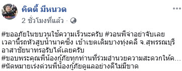 และล่าสุด เจ้าของเฟซบุ๊ก คิตตี้ มีหนวด ได้โพสต์คลิปขณะเดินทางเร่งขับรถเพื่อนำเครื่องสูบน้ำขนาดใหญ่ ไปช่วยสูบน้ำที่ถ้ำหลวง โดยทั้งหมดมี 3 ทีมงาน อย่างที่กล่าวไว้ข้างต้น และกำลังเดินทางในขณะนี้ มีชาวเน็ตเข้าไปให้กำลังใจกันเป็นจำนวนมาก และขอให้เดินทางปลอดภัย เพื่อช่วยเหลือเด็ก ๆ และครูให้ได้