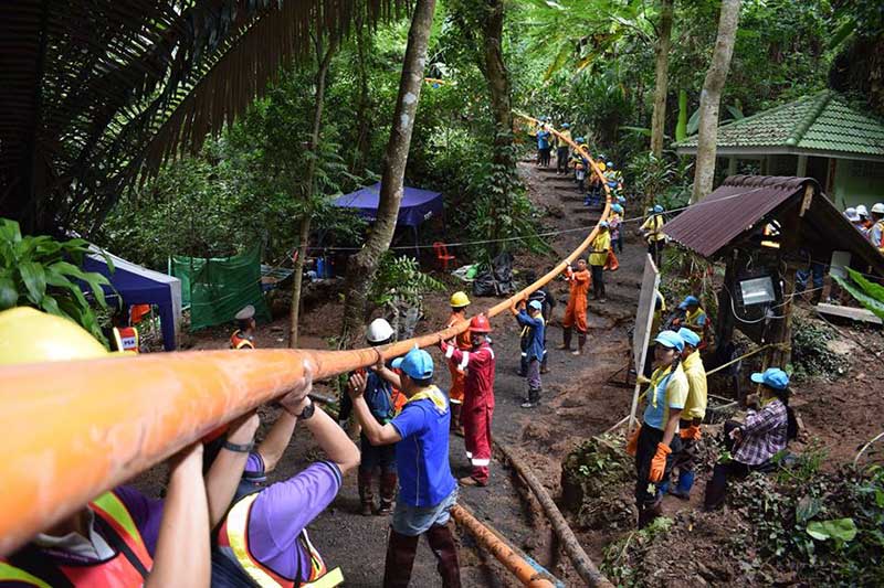 18.00 น. ความคืบหน้าการต่อท่อเบี่ยงทางน้ำห้วยน้ำดั้น ดอยผาหมี ประสบผลสำเร็จ น้ำไม่ไหลเข้าถ้ำหลวง-ขุนน้ำนางนอนแล้ว (Cr. Workpoint News)