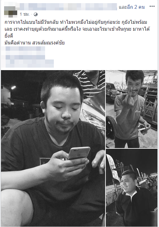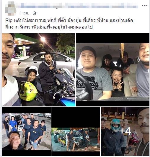 ล่าสุด (2 กรกฎาคม 2561) ในเฟซบุ๊กของ นายภัทรวุฒิ ศรีสุวรรณ หนึ่งในผู้เสียชีวิตจากเหตุการณ์ดังกล่าว พบว่ามีการโพสต์ภาพล่าสุดเมื่อเวลาประมาณ 03.51 น. เป็นภาพที่ นายภัทรวุฒิ และเพื่อน ๆ ได้รับถ้วยจากการแข่งรถ โดยมีคนเข้ามาคอมเมนต์แสดงความเสียใจมากมาย รวมทั้งเพื่อน ๆ ของผู้เสียชีวิตทั้งหมดต่างโพสต์ข้อความไว้อาลัยเป็นครั้งสุดท้าย