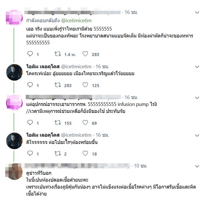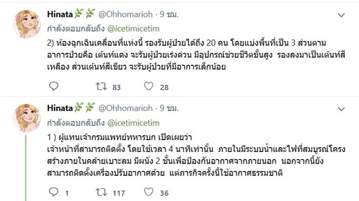@ipikx ได้ให้ข้อมูลด้วยว่า โรงพยาบาลสนามต้องมีห้องผ่าตัด, วอร์ด, มีห้องแล็บ,