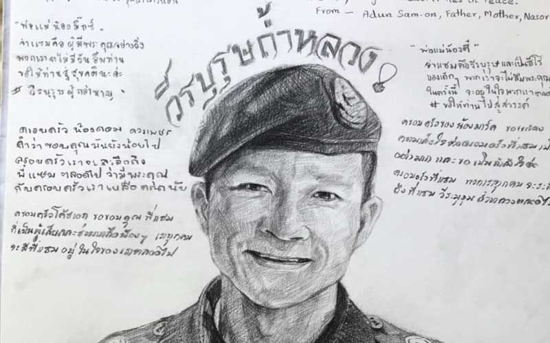 ทางผู้ปกครองและญาติของทีมหมูป่าอะคาเดมีแม่สายได้ร่วมกันวาดภาพของ จ.อ. สมาน
