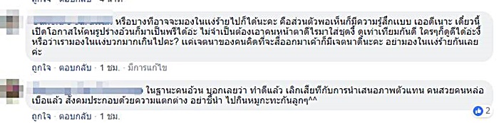 บ้างก็บอกว่าการใช้คนอ้วนเป็นแบบ แสดงว่าปกติแล้วคนอ้วนดูไม่ดีอย่างนั้นหรือ เพราะนี้เหมือนเป็นการเหยียด ขณะที่หลายคอมเมนต์ระบุว่าเป็นภาพที่น่ารัก เหมือนเป็นการเปิดโอกาสให้คนอ้วนได้เป็นแบบ และขอให้ดูที่เจตนาที่จะสื่อดีกว่า