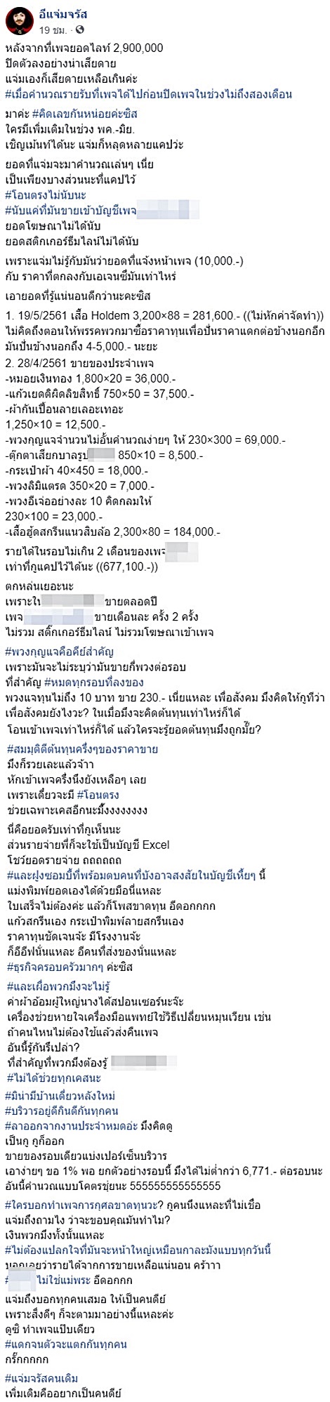 เพจนี้เป็นเพจที่เปิดตัวช่วยเหลือการกุศล แต่ก็มีการขายของมีรายได้หลายแสน