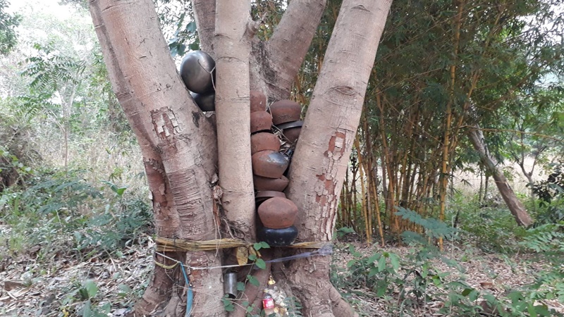 เป็นแค่น้ำเปล่าและเทียนเท่านั้น การทำพิธีจะต้องดื่มน้ำมนต์จำนวนมาก