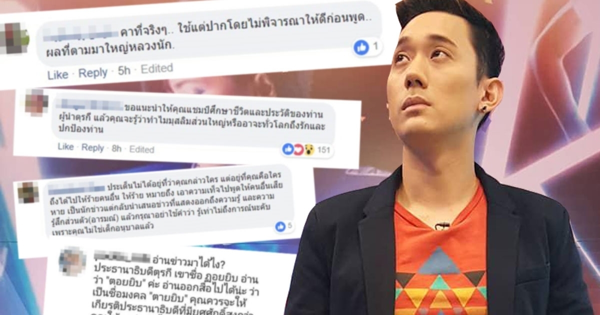 ชาวมุสลิม และชาวสังคมออนไลน์ ไม่พอใจ กรณี แชมป์ พีรพล เสนอข่าวแง่ลบถึงประธานาธิบดีตุรกี แถมให้ข้อมูลผิด ๆ ลั่นควรปลดอย่างจริงจัง จะได้เป็นบทเรียน แต่หลายคนให้อภัย ชี้ขอโทษแล้ว ควรได้รับโอกาสอีกครั้ง
