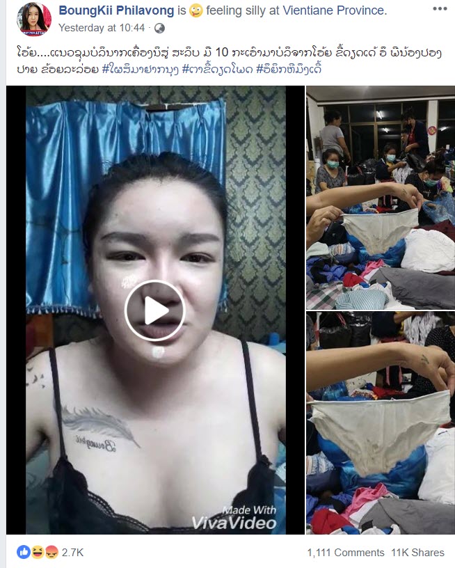 บุ้งกี้ พิลาวง เน็ตไอดอลลาวชื่อดัง เปิดรับบริจาคเสื้อผ้าช่วยผู้ประสบภัยเขื่อนแตก แต่เจอคนส่งกางเกงในเก่าเป้าขาด ลั่นจะส่งมาช่วยดูด้วย ใครจะกล้าใส่ !