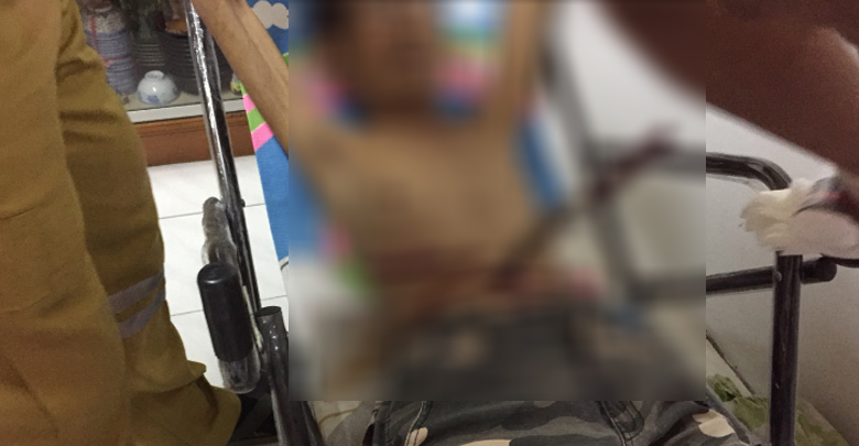 พ่อเฒ่าวัย 72 ปี ก่อเหตุใช้มีดทำครัว 3 ด้าม แทงเข้าที่หน้าท้องของตัวเองบาดเจ็บ ก่อนนอนอยู่บนเตียงผ้าใบในบ้านพัก ล่าสุดส่งโรงพยาบาลแล้ว
