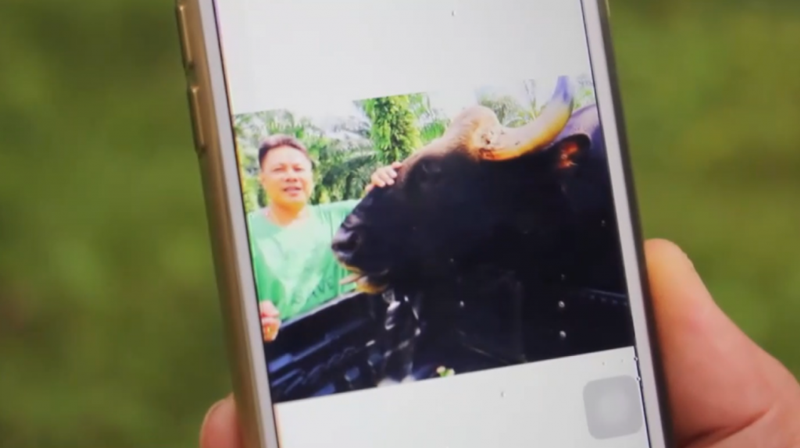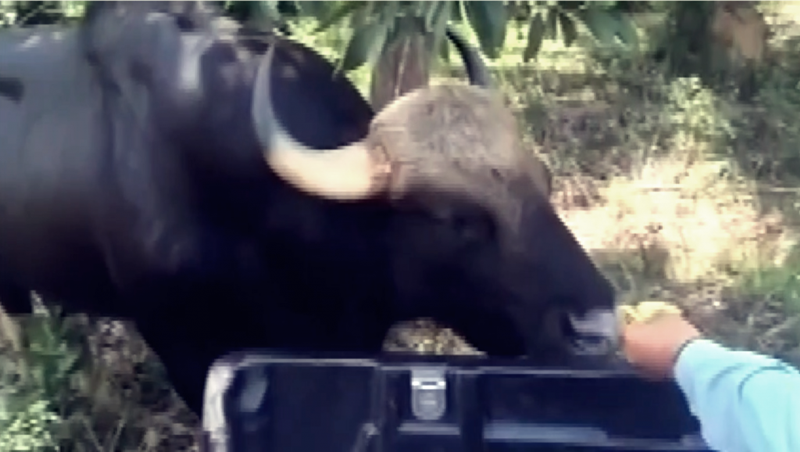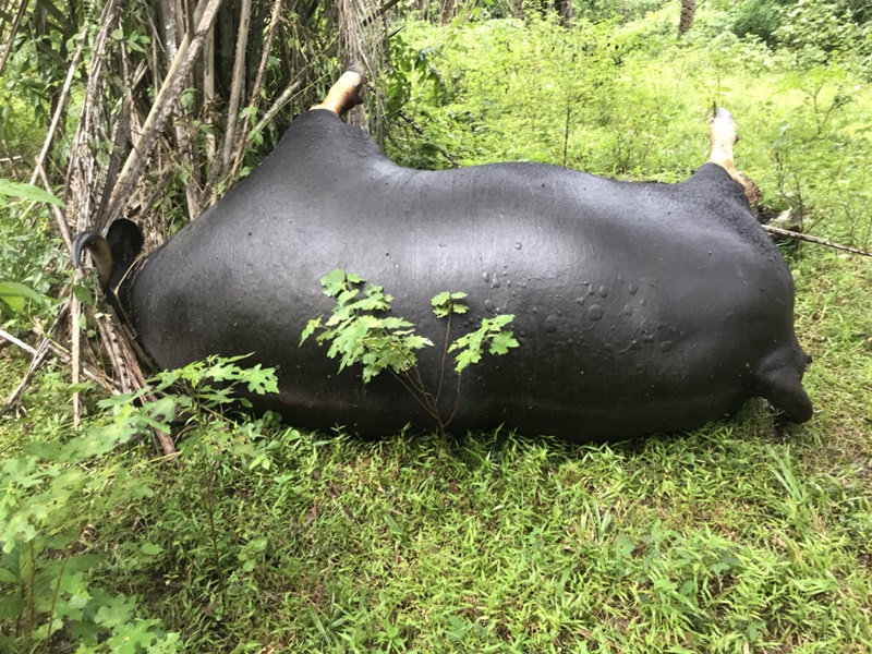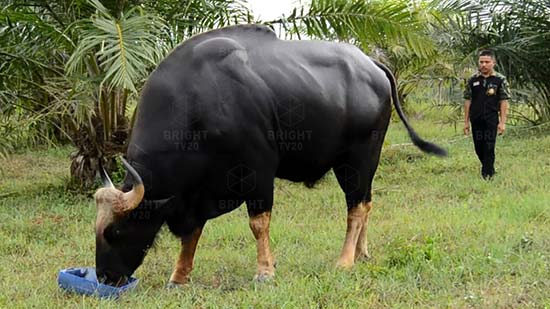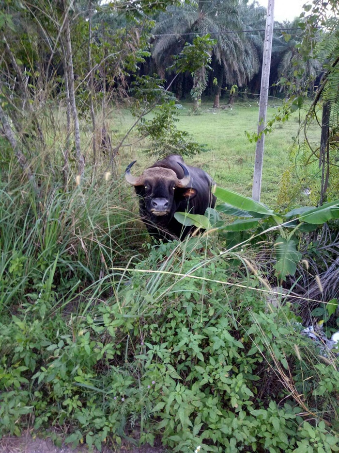 กระทิงป่าเพศผู้ที่หลงป่าเข้ามาอาศัยอยู่ในบริเวณวิทยาลัยเกษตรและเทคโนโลยีชุมพร