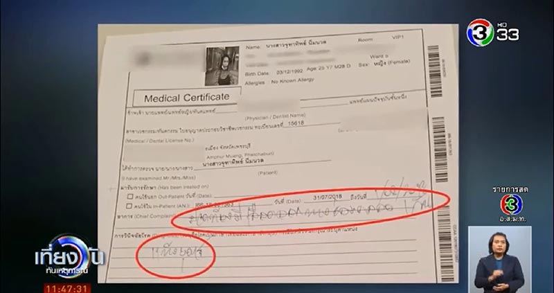 เมื่อตรวจก็พบว่าน้องมะนาวแท้งลูกแล้ว จึงทำการออกใบรับรองแพทย์ยืนยัน