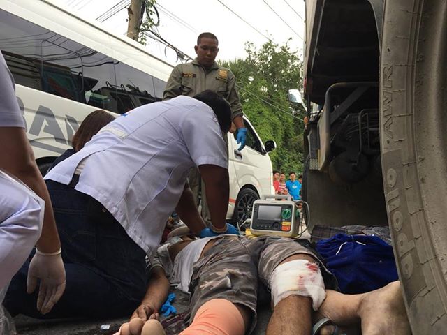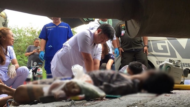 โดยทั้ง 2 ราย ขับขี่และซ้อนท้ายรถจักรยานยนต์ ยี่ห้อ ฮอนด้า รุ่น เวฟ สีแดง-ดำ ทะเบียน 3กฮ 3036 กทม. พุ่งชนรถบรรทุก 10 ล้อ ยี่ห้อ อีซูซุ ทะเบียน 86-2501 นครปฐม เจ้าหน้าที่กู้ชีพกู้ภัยพยายามช่วยเหลือด้วยการปั๊มหัวใจนานกว่า 20 นาที แต่ไม่เป็นผล ชายทั้งสองเสียชีวิตในเวลาต่อมา ส่วนผู้ขับขี่รถบรรทุก 10 ล้อใช้ช่วงชุลมุนหลบหนีไป