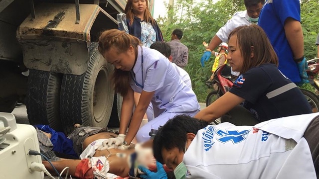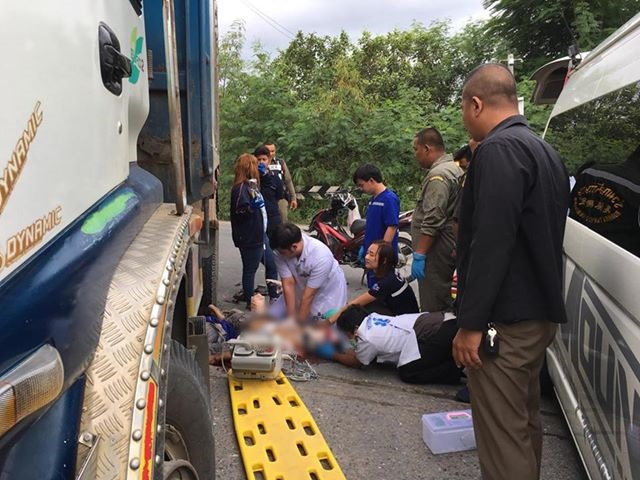จ.นนทบุรี ได้รับแจ้งมีรถจักรยานยนต์ชนกับรถบรรทุก 10 ล้อ มีผู้เสียชีวิต 2