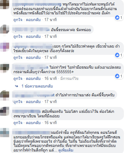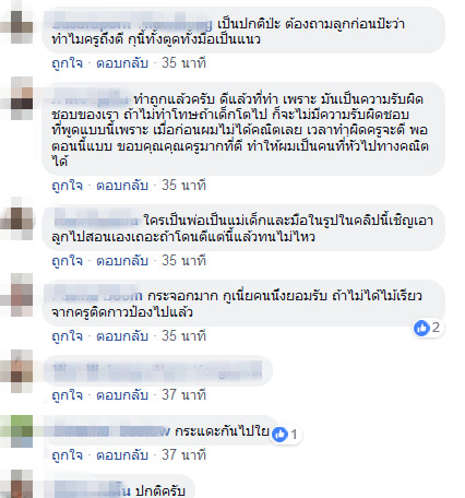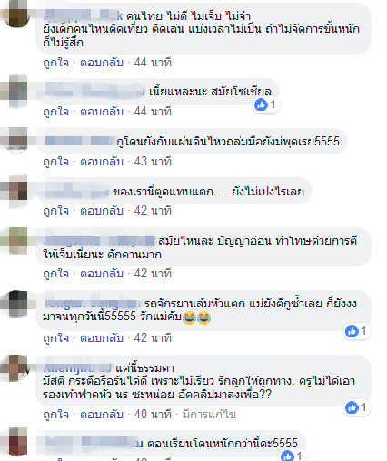 หลาย ๆ คน มองว่าเป็นเรื่องปกติ เพราะสมัยตนยังเด็กก็โดนตีหนักกว่านี้ แต่บางคนก็ให้ความเห็นว่า ยุคสมัยเปลี่ยนไปแล้ว การทำโทษเด็กด้วยการตีอาจจะไม่เหมาะสมและชี้แนะว่าควรจะสอนให้เด็กเข้าใจในการเรียน จะได้ไม่ทำการบ้านผิดและถูกลงโทษอย่างเช่นคลิปนี้