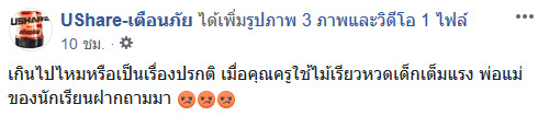 เพจเฟซบุ๊ก UShare-เตือนภัย ได้โพสต์คลิปเมื่อวันที่ 16 สิงหาคม 2561 เป็นภาพภายในห้องเรียนโรงเรียนแห่งหนึ่ง โดยเพจได้ระบุว่า "เกินไปไหมหรือเป็นเรื่องปรกติ เมื่อคุณครูใช้ไม้เรียวหวดเด็กเต็มแรง พ่อแม่ของนักเรียนฝากถามมา" ซึ่งมีผู้สนใจชมกว่าล้านครั้ง และวิพากษ์วิจารณ์อย่างมากมาย