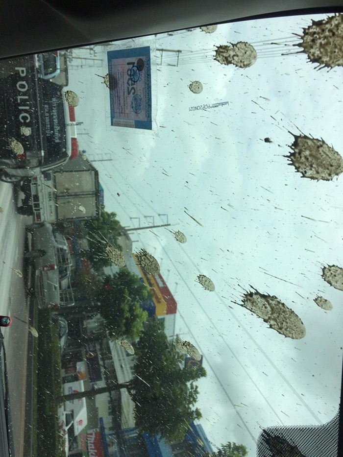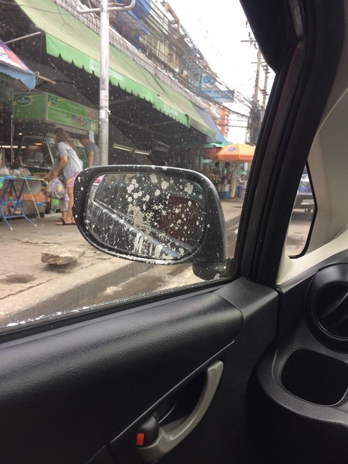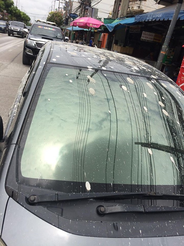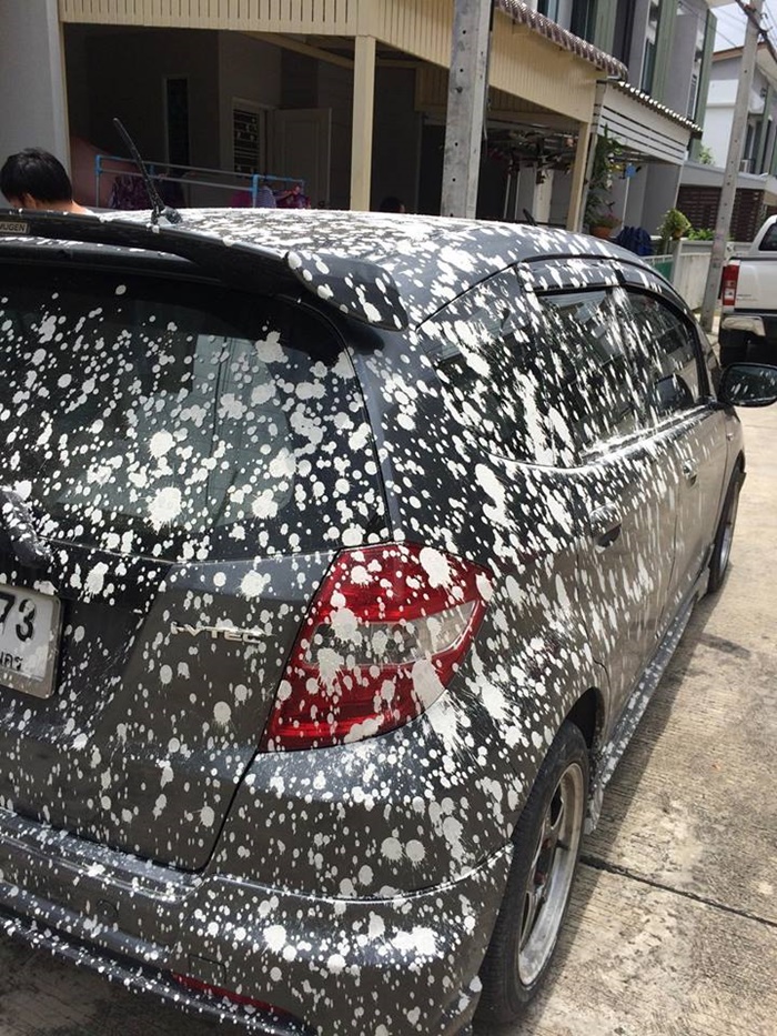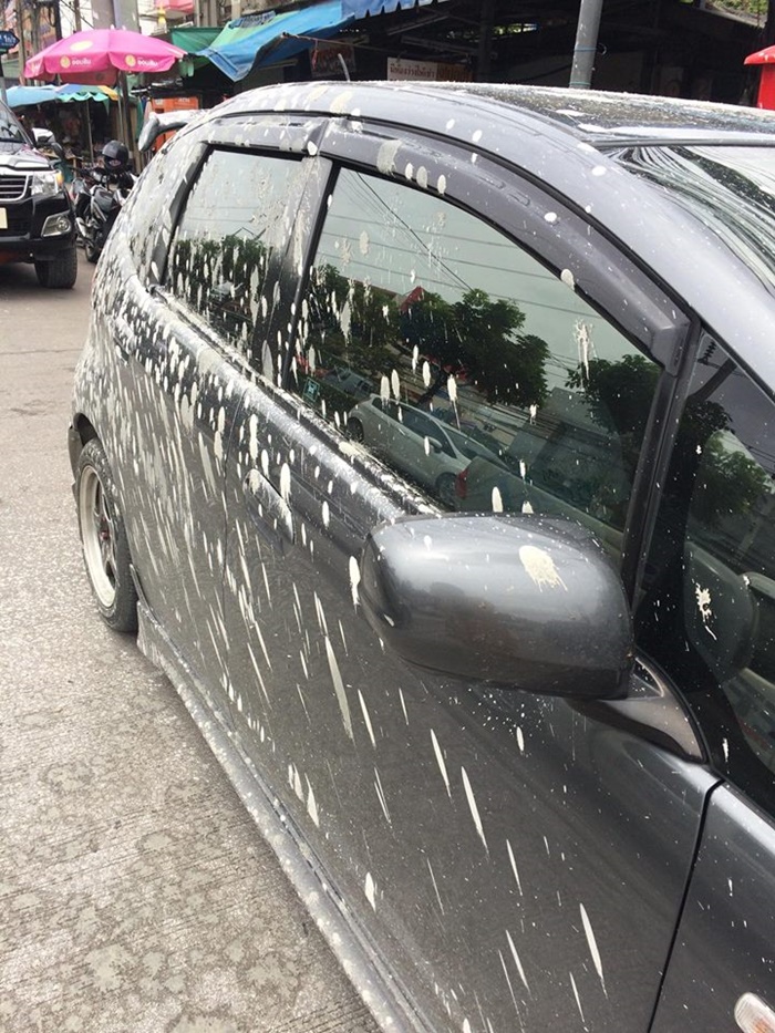 มีคราบปูนสีขาวกระเด็นใส่เต็มคันรถ