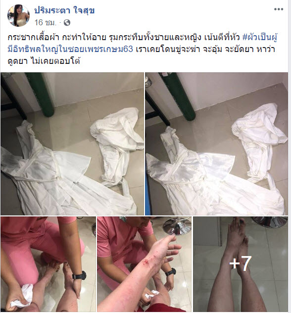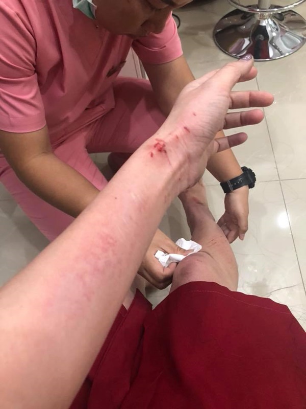 ก่อนจะมีหญิงรายหนึ่งฉวยโอกาสกระชากผมเธอและสั่งให้พวกที่มาด้วยรุมกระทืบจนบาดเจ็บ