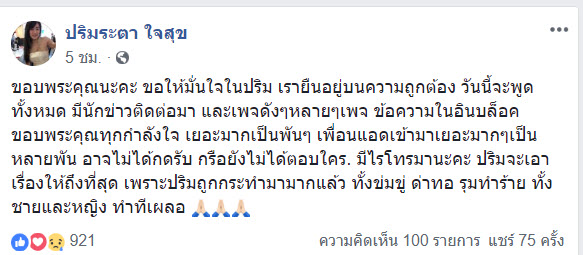 กรณีผู้ใช้เฟซบุ๊ก ปริมระตา ใจสุขสาวเจ้าของคลินิกเสริมความงามแห่งหนึ่ง