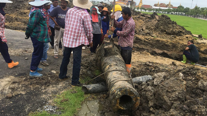 พบปืนใหญ่ถูกฝังไว้กลางพื้นที่่ท้องสนามหลวง คาดตั้งแต่สมัยรัชกาลที่ 4 - รัชกาลที่ 5 โดยเป็นปืนใหญ่วังหน้า