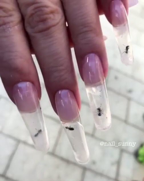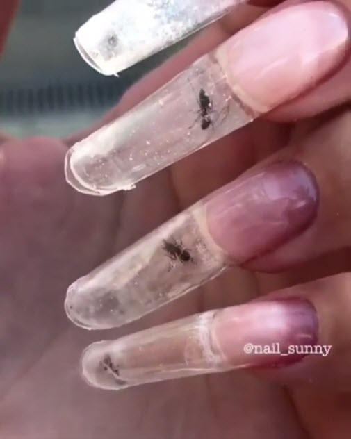 มาใส่ไว้ในเล็บต่ออะคริลิก โดยเหล่าชาวเน็ตกล่าวว่ามันเป็นการทารุณสัตว์