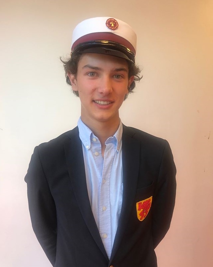 อเล็กซานเดอร์ เฟรเดอริก แห่งเดนมาร์ก เนื่องในโอกาสเฉลิมฉลองมีพระชันษาครบ 19 ปี โดยทรงสวมเสื้อเชิ้ตสีฟ้า คลุมทับด้วยเบลเซอร์สีน้ำเงินน้ำทะเล